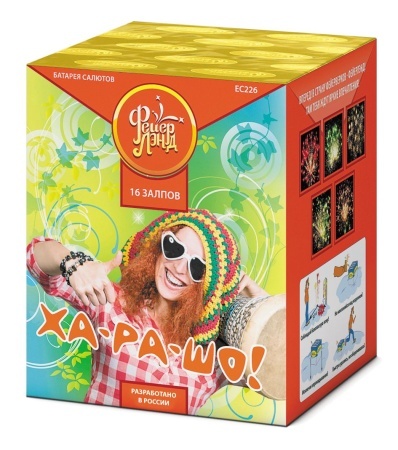 Батарея салютов ФЛ Ха-ра-шо! 16 залпов калибром 0.8" высотой 35 метров