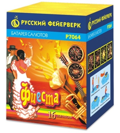 Батарея салютов РФ Фиеста 16 залпов калибром 0.8" высотой 35 метров