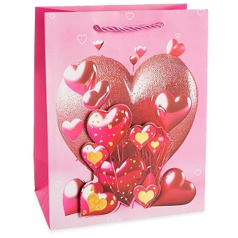 Пакет подарочный 3D, Тысяча сердец, Дизайн №1, Розовый, 41,5*30*12 см, 1 шт.