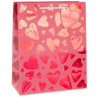 Пакет подарочный, Множество сердец, Металлик, 23*18*10 см, 1 шт.