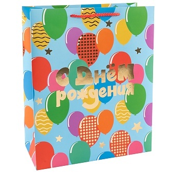 Пакет подарочный С Днем Рождения! (воздушные шарики) Металлик 16*12*7 см.
