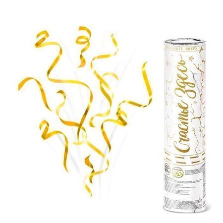 Пневмохлопушка Серпантин Счастье здесь с Золотой печатью 20см.